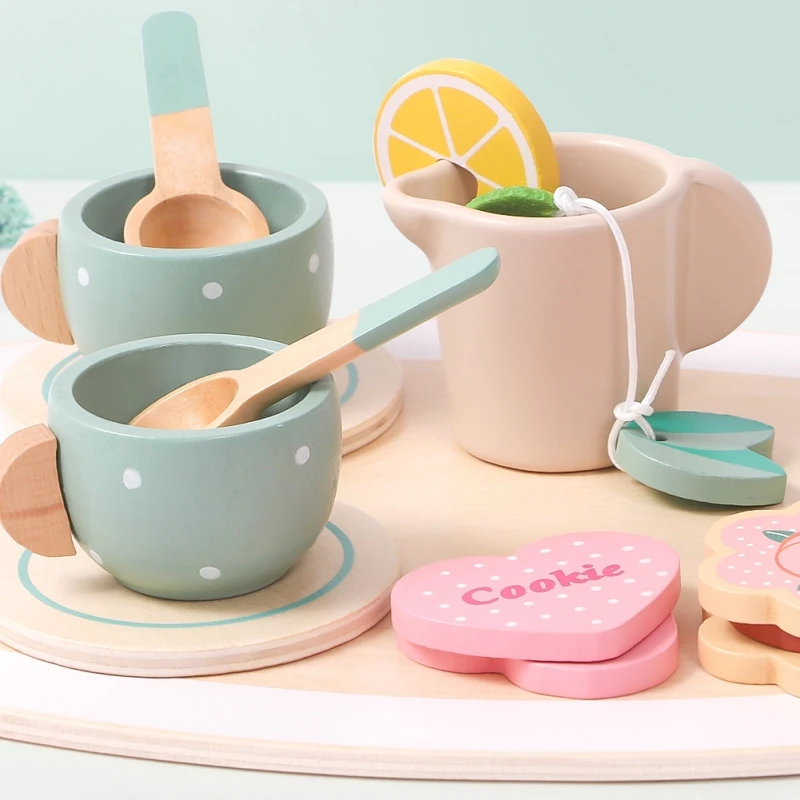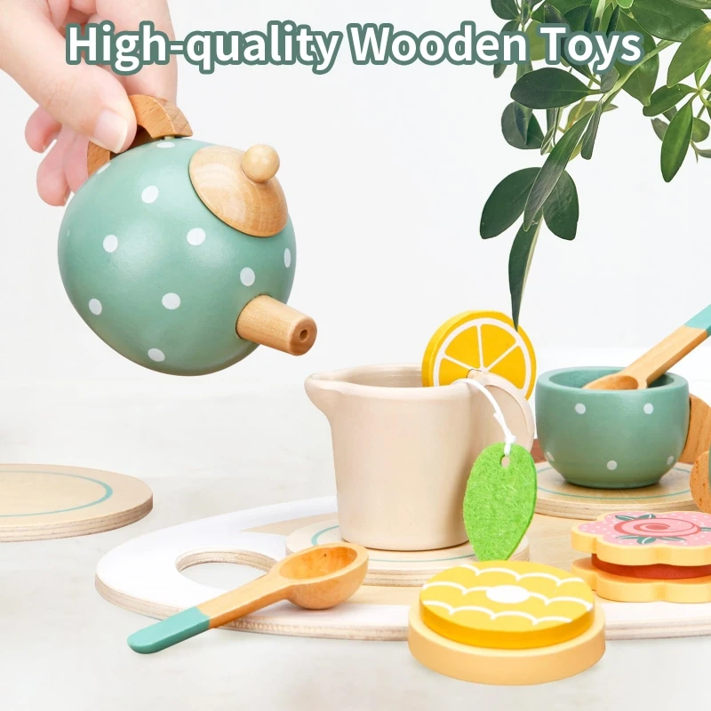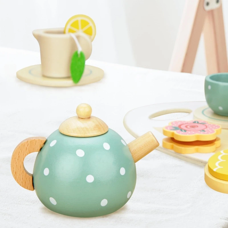 🎀 Un tè delle cinque da favola! Questo adorabile set giocattolo in legno permette ai piccoli di organizzare eleganti tea party con amici e famiglia, sviluppando creatività e capacità sociali.