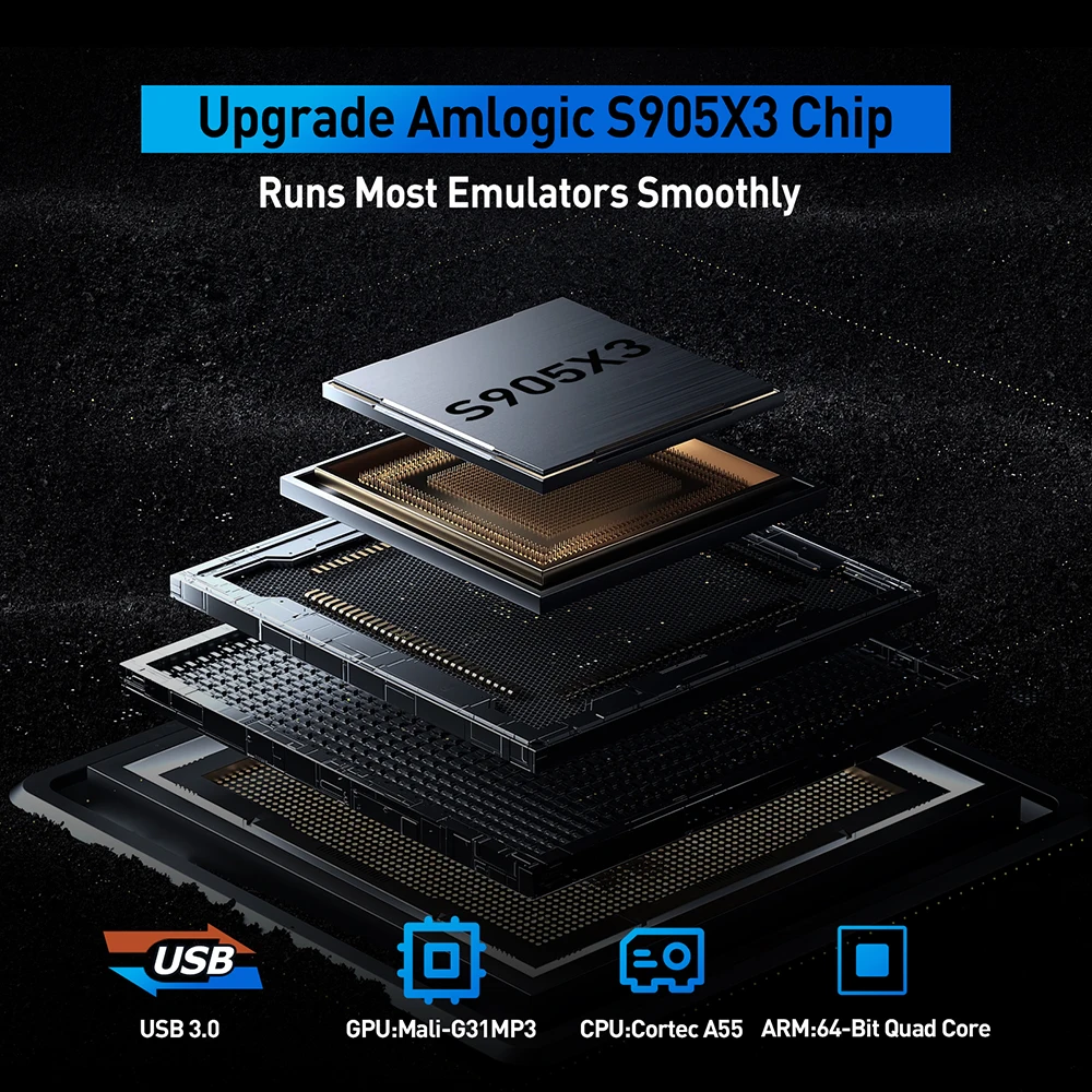 Chip Amlogic S905X3 (Quad-Core) + 4GB RAM / 32GB ROM