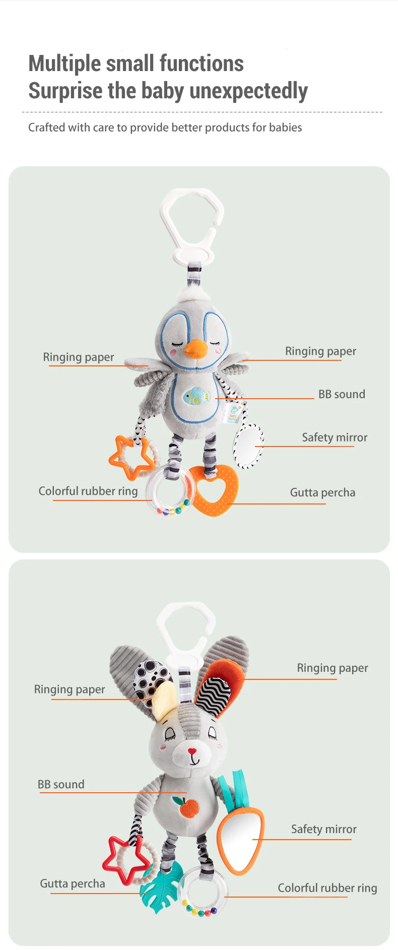 Adorabili sonagli a forma di animaletto che stimolano i sensi e accompagnano la crescita del tuo bambino fin dai primi mesi.