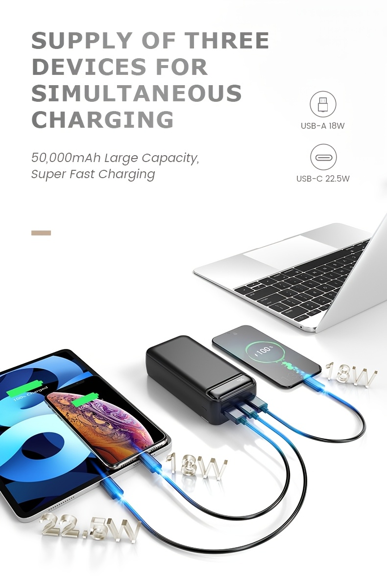 Power Bank 50.000mAh 🔋 Ricarica 22.5W Ultra Veloce ✅ Compatibile con iPhone 16/15- E tutti gli smartphone