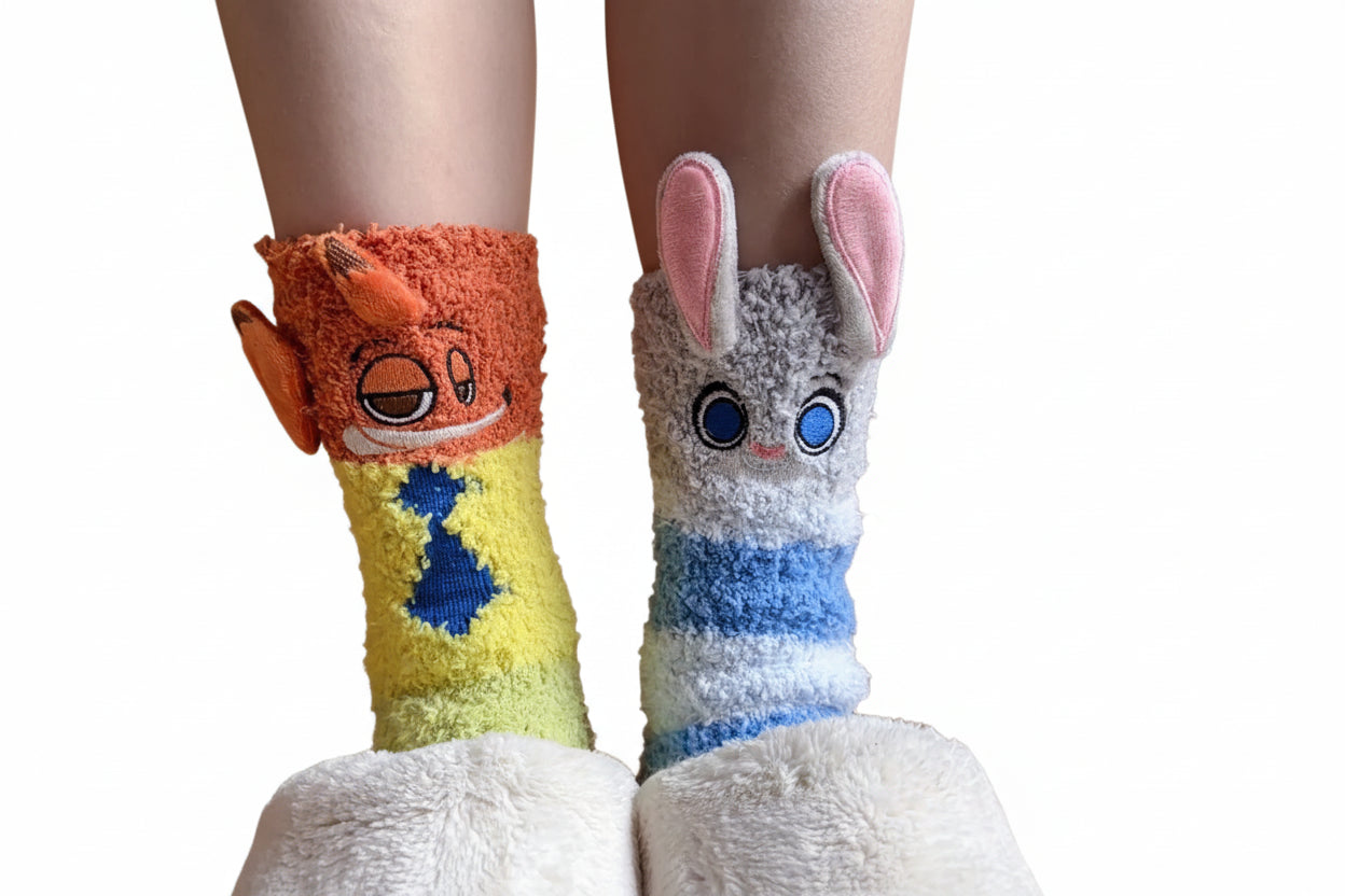 Porta un po' di magia di Zootropolis nella tua routine! Scegli i tuoi personaggi preferiti e aggiungi al carrello questo caldo abbraccio per i piedi. 🐰🦊🧦