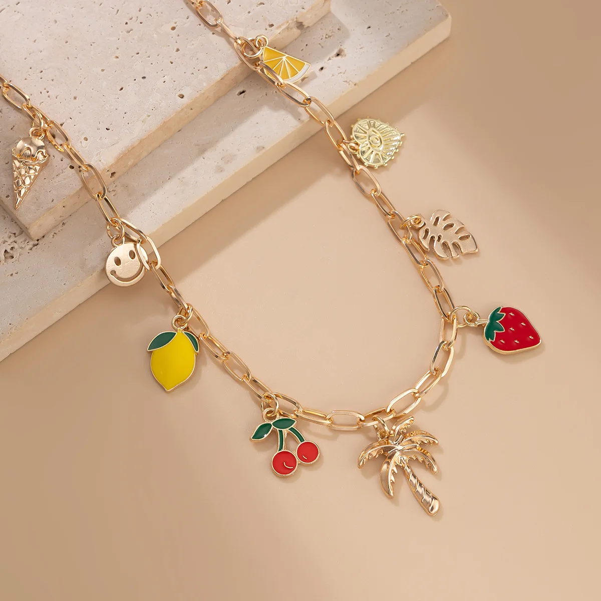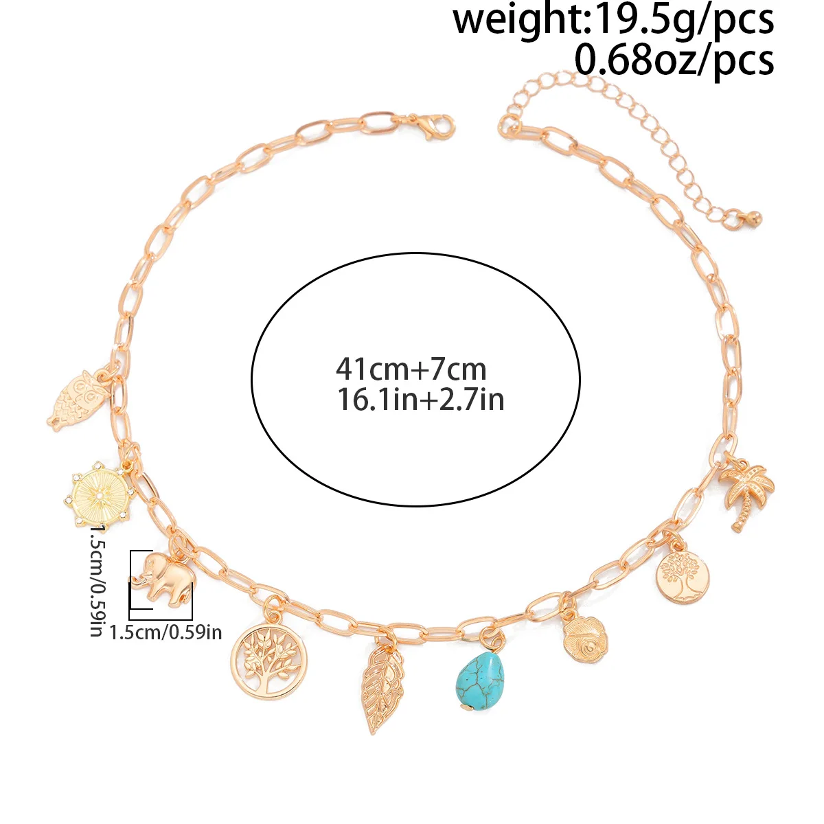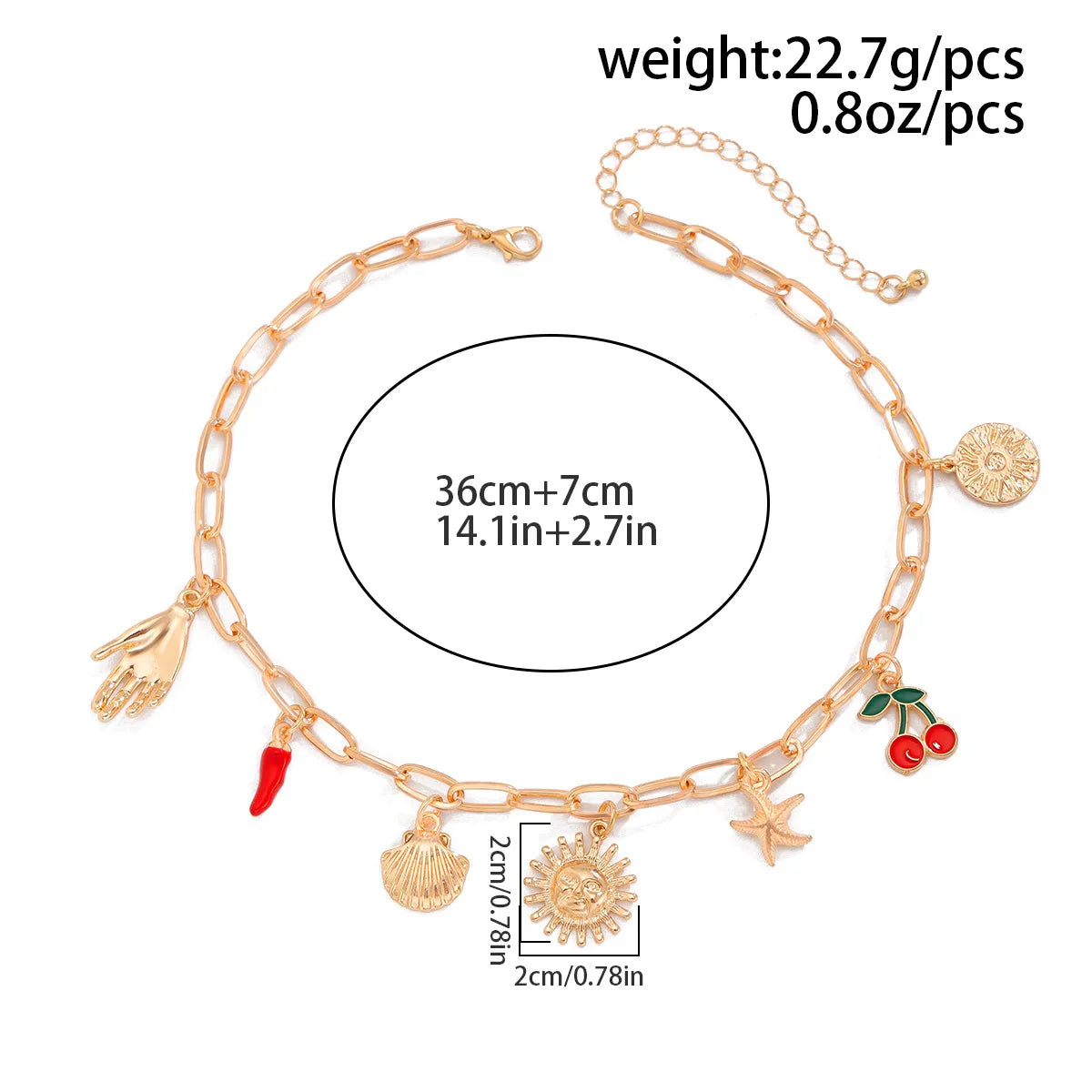 Collana Donna Retro: Ciondolo Occhio Malocchio, Croce e Stella Marina in Metallo - Gioiello con Elementi Marini