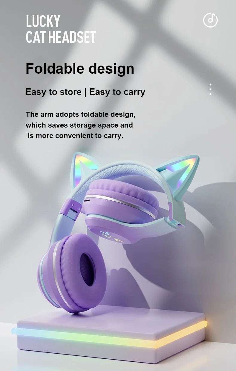 🎧 Auricolare Bluetooth perfetto per chi ama lo stile unico e la tecnologia! Con un design a orecchie di gatto e luci LED RGB colorate, queste cuffie sono ideali per ragazze, bambini e chiunque ami un tocco di originalità.