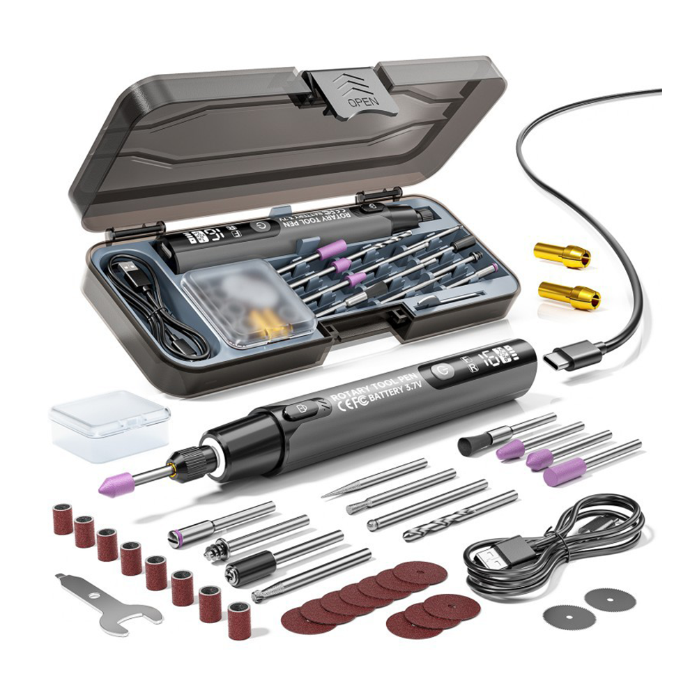 Precisione senza limiti. La mini smerigliatrice rotante JCD è il tuo studio di lavorazione di precisione in miniatura. Leggera come una penna (solo 40g), potente fino a 16.000 RPM e completamente senza fili, è lo strumento ideale per incisioni, levigatura, taglio e finitura su metallo, legno, gioielli e resina.