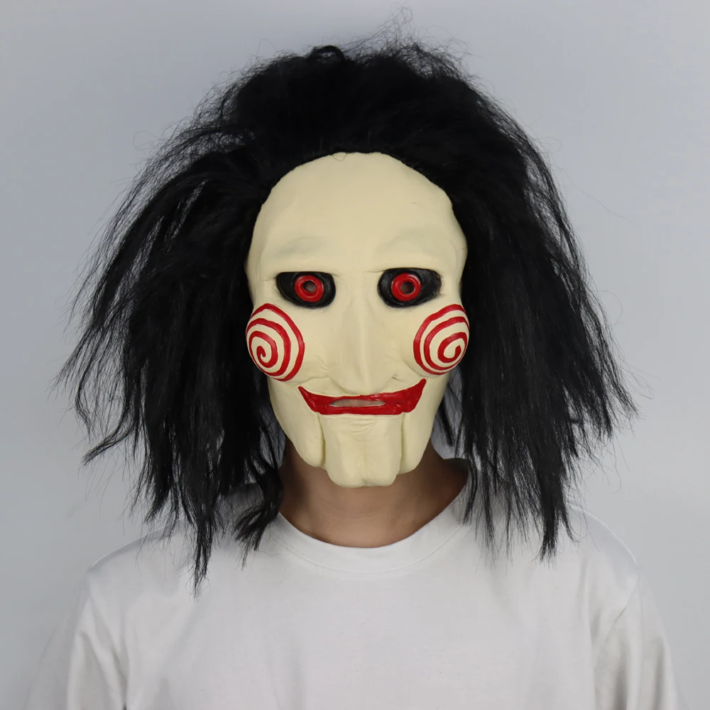 Completa il tuo costume da killer con la maschera horror più iconica del cinema! Questa riproduzione fedele della maschera di Jigsaw, ispirata al film Spiral, è realizzata in lattice per un effetto spaventosamente realistico. Perfetta per Halloween, cosplay o collezione horror.
