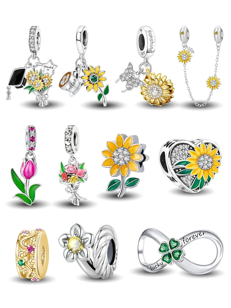 Crea gioielli unici con queste perline in argento sterling 925! La collezione a tema floreale con girasoli e rose, impreziosita da zirconi, è perfetta per realizzare bracciali personalizzati di alta qualità.