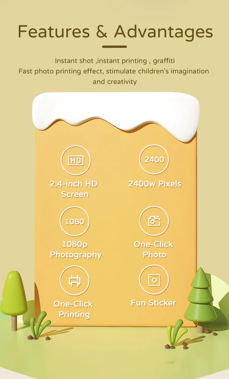 Stampante Instantanea per Bambini con Fotocamera - Gioco Educativo Rosa/Blu