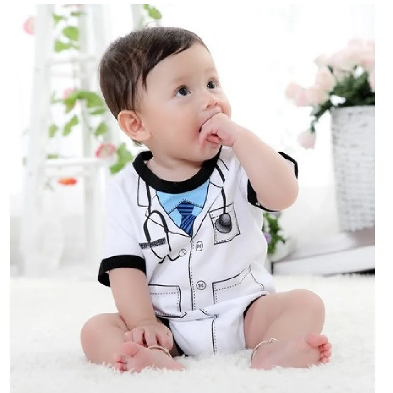 🩺 Per i Piccoli Medici in Erba! Questa adorabile tutina a maniche corte con stampa geometrica ispirata al mondo della medicina è perfetta per far sentire il tuo bimbo o la tua bimba dei veri dottori! Con il suo cotone 100% traspirante, sarà comodissima nelle calde giornate estive.